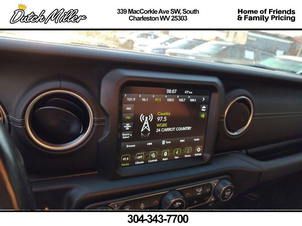 with XM/Sirus Satellite Radio you are no longer restricted by poor quality local radio stations while driving this 1/2 ton pickup. Anywhere on the planet, you will have hundreds of digital stations to choose from. This unit features a hands-free Bluetooth® phone system. The vehicle offers Automatic Climate Control for personalized comfort. Start this 1/2 ton pickup from inside with remote start. This 1/2 ton pickup offers Apple CarPlay for seamless connectivity. This Jeep Gladiator offers Android Auto for seamless smartphone integration. An off-road package is installed on this 1/2 ton pickup so you are ready for your four-wheeling best. The leather seats in it are a must for buyers looking for comfort, durability, and style. Our dealership has already run the CARFAX report and it is clean. A clean CARFAX is a great asset for resale value in the future. Protect this Jeep Gladiator from unwanted accidents with a cutting edge backup camera system.